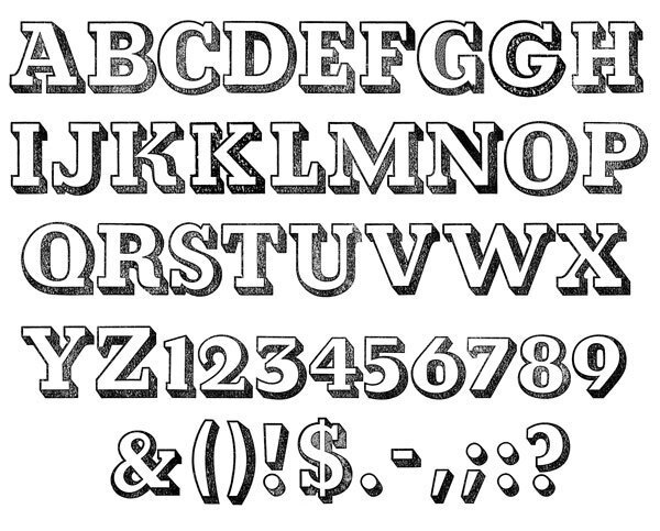 This is a high resolution scan of the foundry metal typeface Beton Open designed by Henrich Jost. This is a layered file, each letter on its own layer meticulously separated with transparencies for easy use with your artwork.